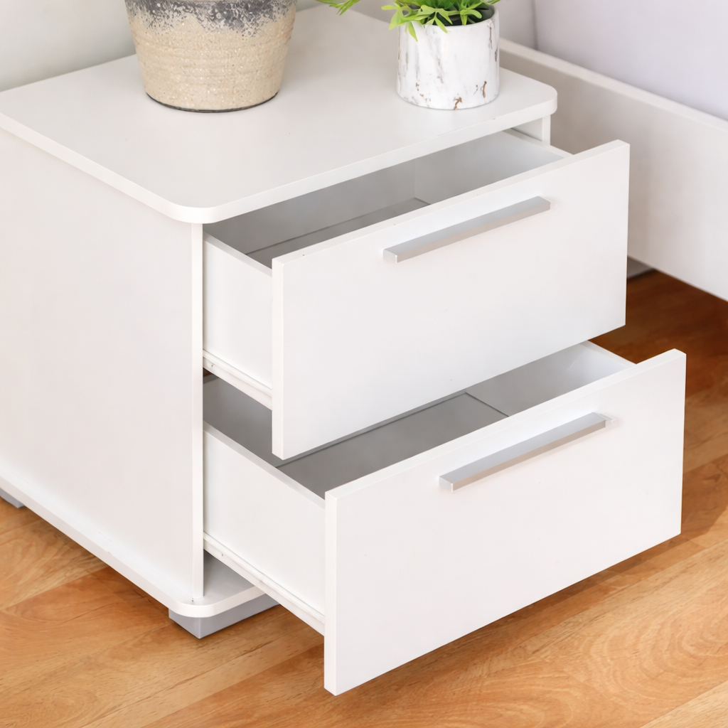 • Two Spacious Storage Drawers – Functional dual drawer storage cabinet ideal for organizing books, chargers, accessories, and essentials