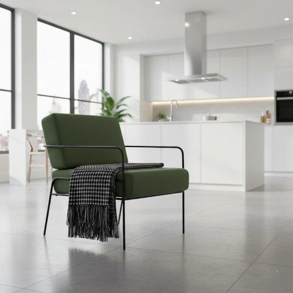 Modern Accent Chair for Living Room – Upholstered Fabric, Black Metal Frame – Furely