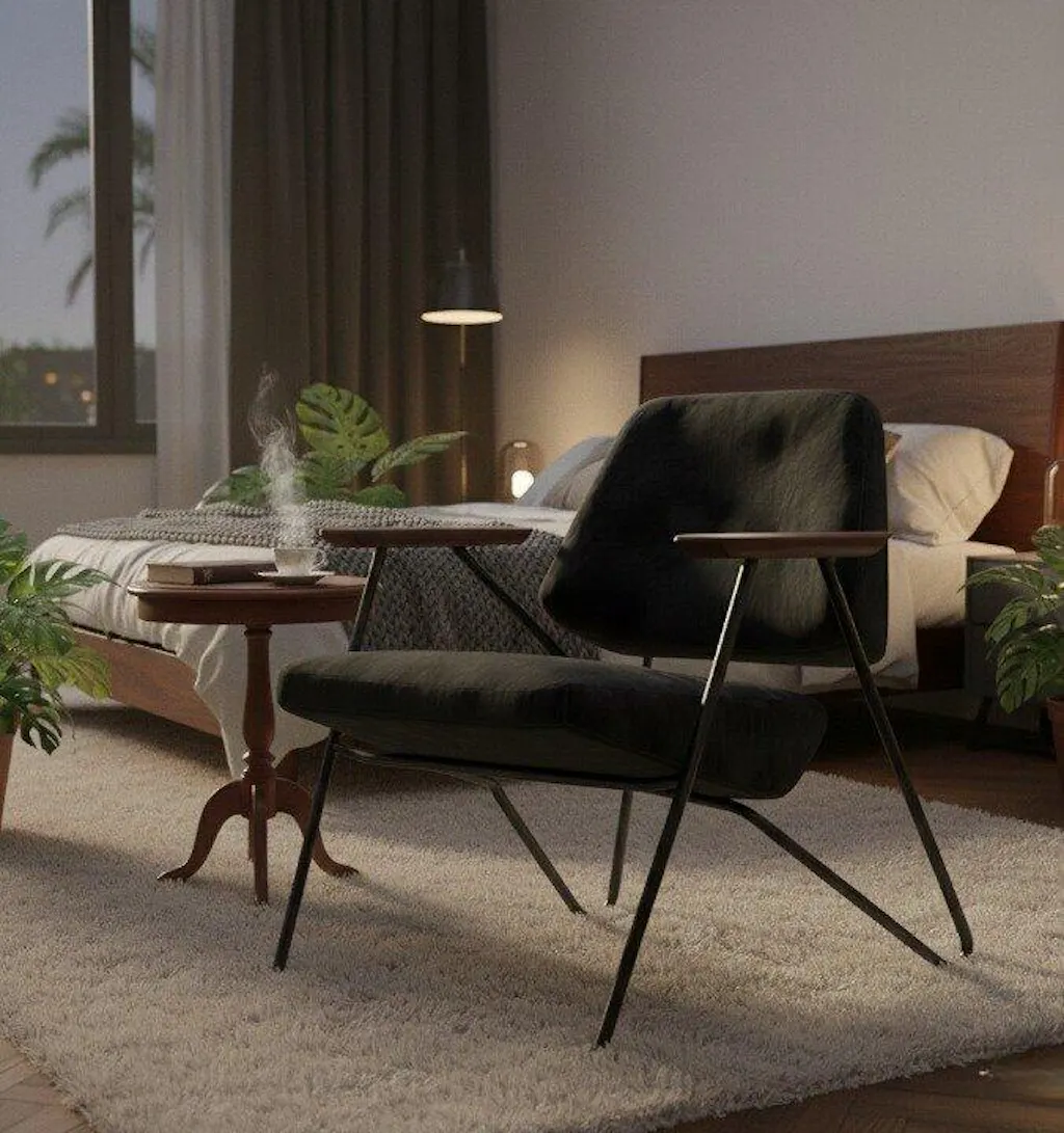 Transform your living space with this modern lounge accent chair, designed to combine minimalist style with ultimate comfort. The sleek metal frame, ergonomic backrest, and premium upholstery make it an ideal choice for living rooms, lounges, cafes, and studio apartments.