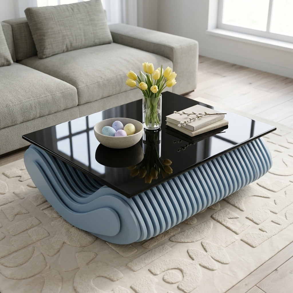 • Modern Parametric Coffee Table Design – This stylish parametric coffee table features a flowing rib structure that creates a stunning wave-inspired modern furniture look, perfect for contemporary interiors.