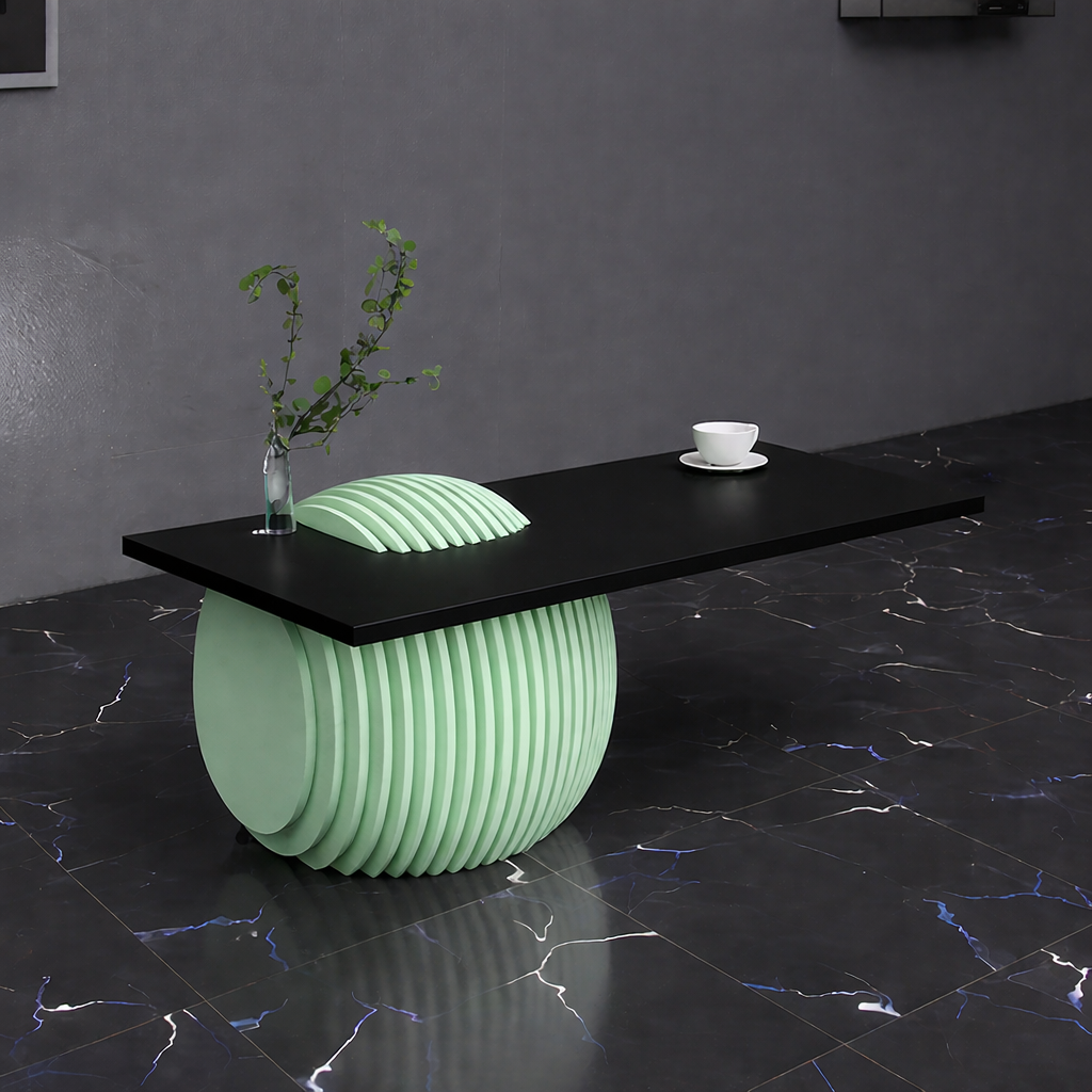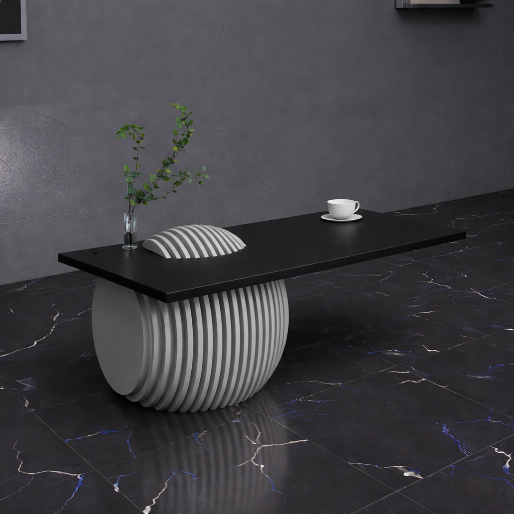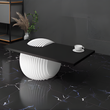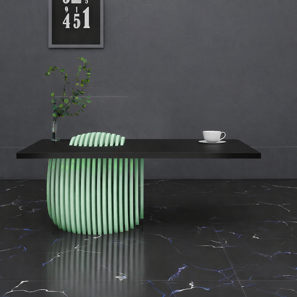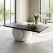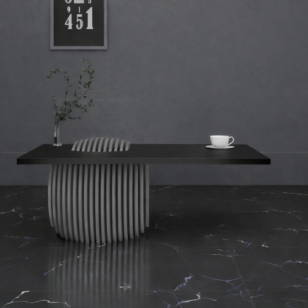 • Premium Black Tabletop – Sleek matte black rectangular top creates a luxurious contrast with the sculptural wooden base