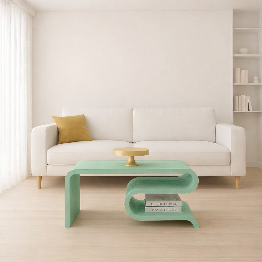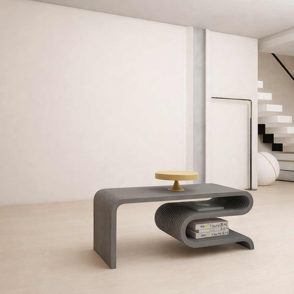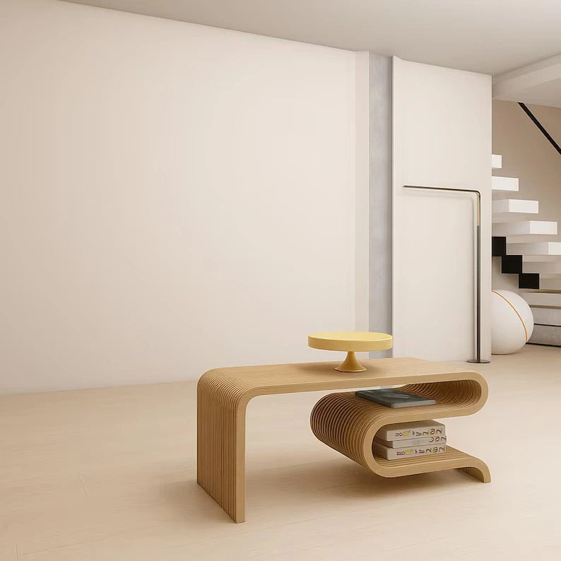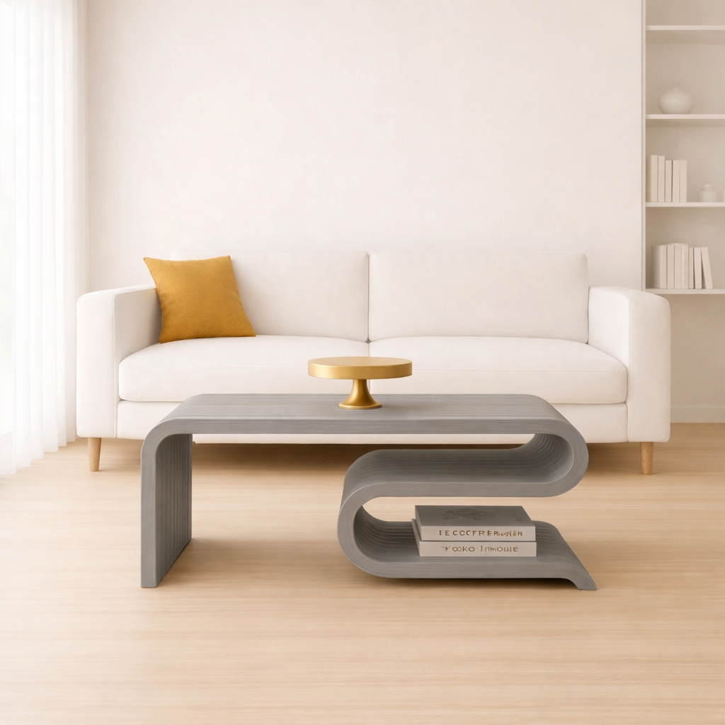 Modern Designer Coffee Table – Enhance your home with this premium curved wooden coffee table featuring a sleek flowing design and elegant finish.