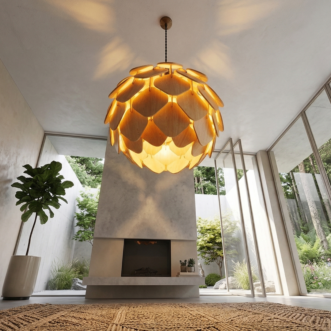 • Modern Wooden Leaf Pendant Light – Unique Designer Lamp