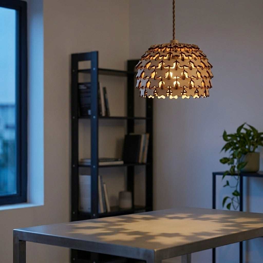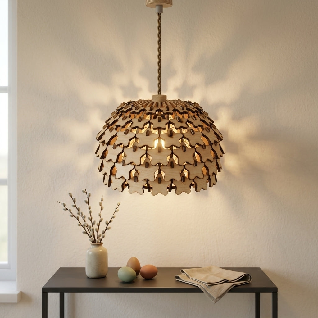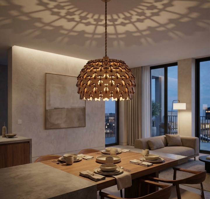 • Modern Wooden Pendant Light – Designer Hanging Ceiling Lamp
